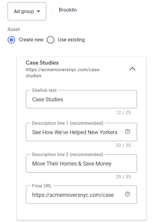 - Sitelink extensions