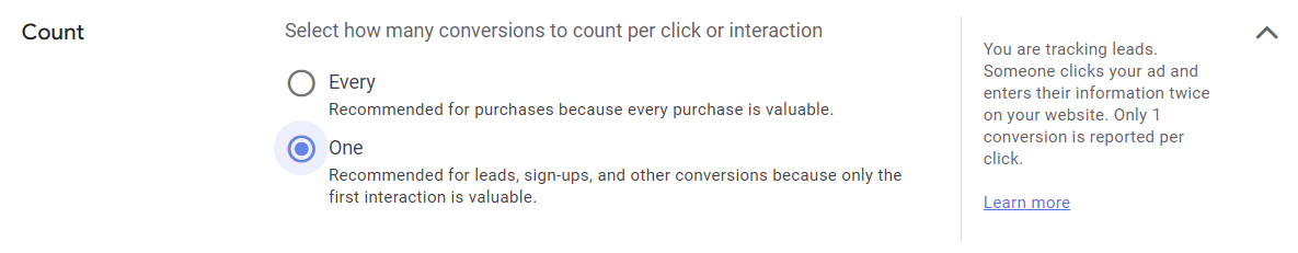 You want to make sure this box is checked. By including this conversion in your conversions, it counts towards your conversion data in the rest of Ads, so you can optimize based on this conversion. It counts towards conversion value, cost per conversion, conversion rate, etc.