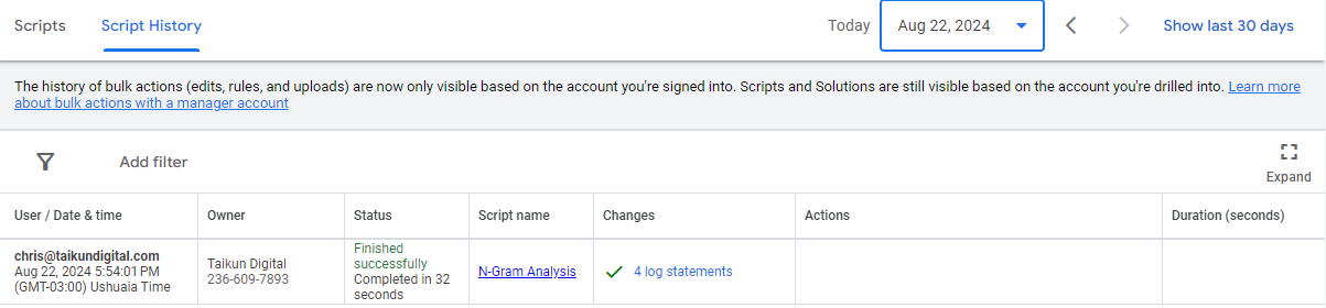 By running a script that collects all the data on your search terms and converts that data into a spreadsheet of n-grams, you are able to identify n-grams that drive clicks but not conversions and turn them into negative keywords easily. This will make your Google Ads campaigns more efficient and profitable.