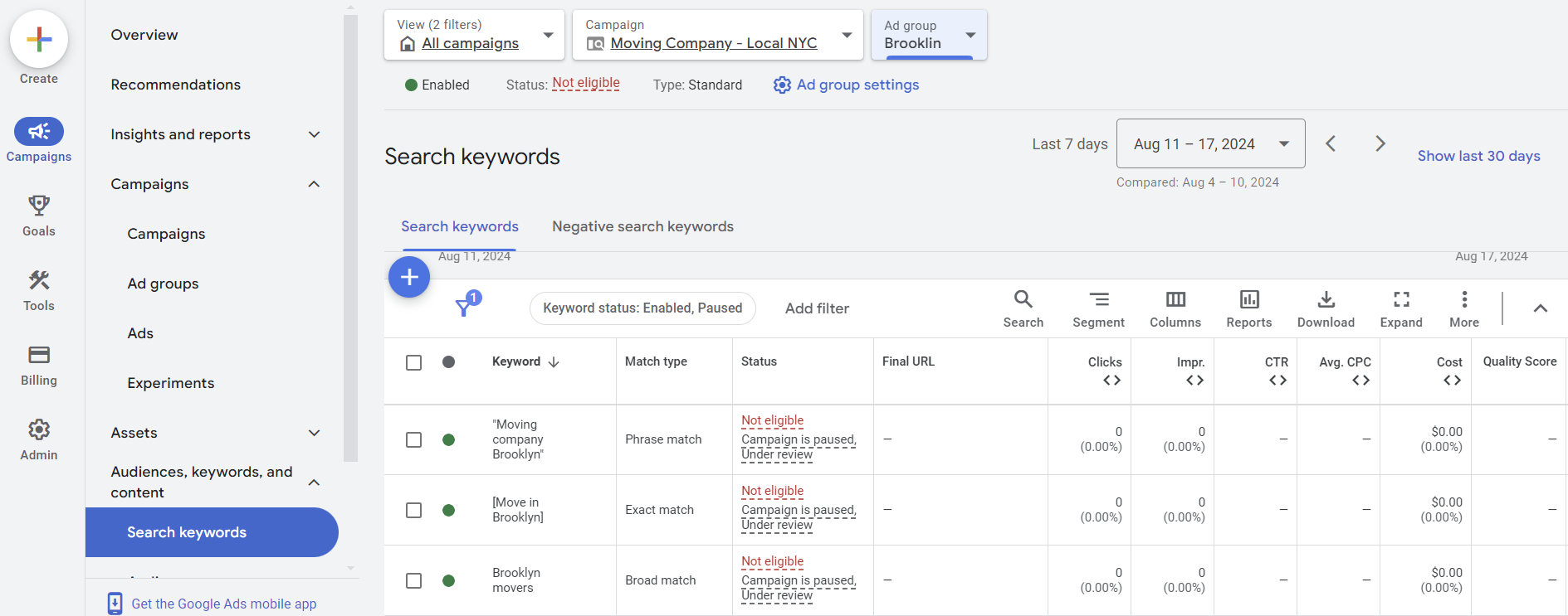 Reviewing Your Ad Groups