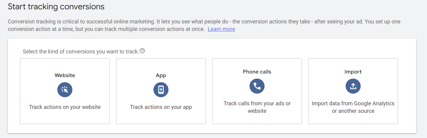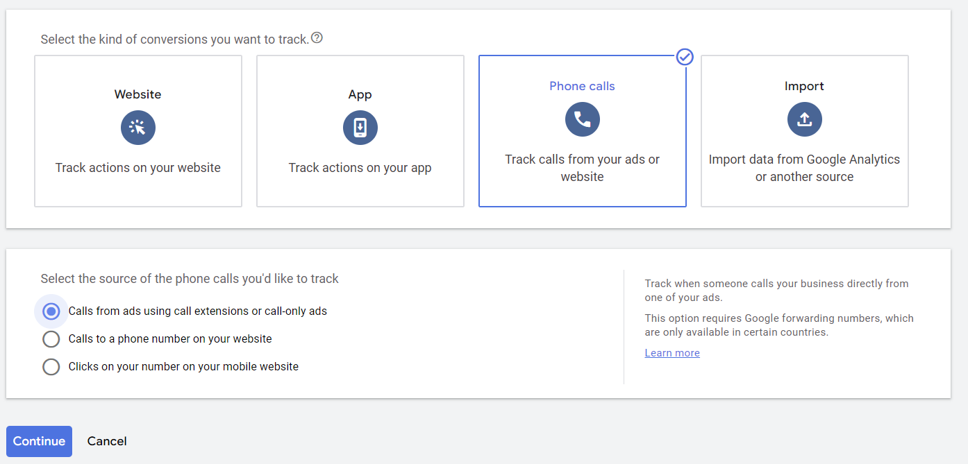 With all of the settings chosen, you can save your conversion. You will likely want to have a few different conversions, depending on your business. In most instances, you will want to have phone call conversions for both your website and your ads, and you’ll have at least one other type of conversion as well, either a form submission or purchase.