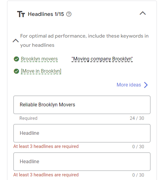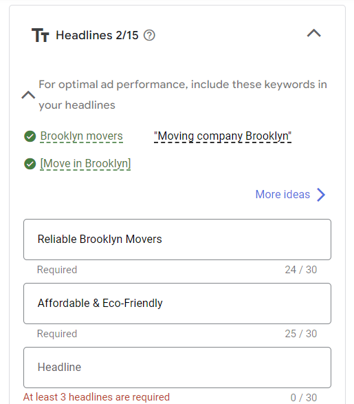 Make sure you have at least two responsive search ads. Make sure they’re relevant to the keywords in the ad group. You also will want to confirm that the landing page your ads are linking to is the correct landing page.