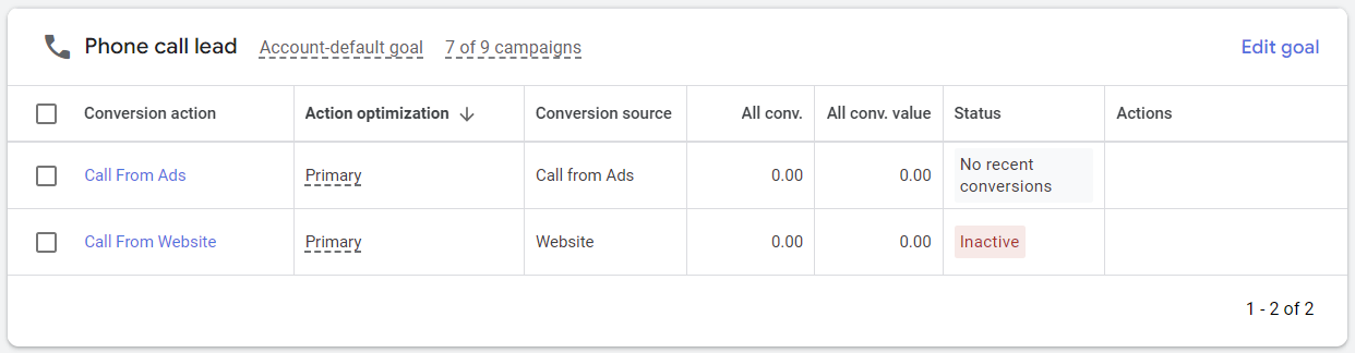 This is the status we want to be seeing when your campaigns are running. This means that the tracking is active and that Google is recording conversions. This is where you want to be.