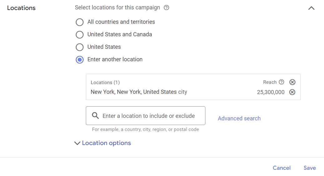 You want to ensure that the location the campaign is targeting is the area you want to be advertising. Make sure this is not nationally or globally unless you’re absolutely certain that is where you want to be advertising!