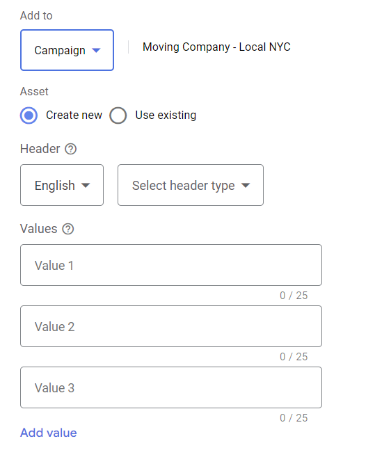 - Structured snippet extensions